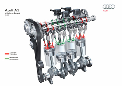 En el futuro, dentro de la estrategia de eficiencia de Audi cada vez cobrarán más importancia la técnica downsizing de reducción de cilindrada y la nueva tecnología de desconexión selectiva de cilindros Audi cylinder on demand, que debuta en 2012 en el nuevo motor 1.4 TFSI del A1 Sportback, y en el revolucionario V8 4.0 TFSI de los Audi S6, S7 Sportback y S8.