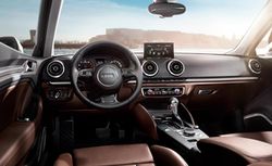 Los colores del interior se han adaptado a las respectivas líneas de equipamiento. En el A3 Sportback Attraction se realiza en negro o en Gris Titanio, mientras que en la deportiva línea Ambition se puede optar entre una estética en negro integral o con elementos de contraste adicionales en color plata, azul o amarillo. La opción bicolor Audi design selection en Naranja Capri, una propuesta exclusiva de los diseñadores de Audi, sorprende con un juvenil universo cromático. Para la lujosa línea Ambiente se ofrecen además los colores Beige Pashmina y Marrón Castaño.