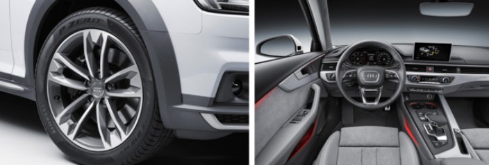 El nuevo Audi A4 Allroad cuenta con 34 mm más de altura libre con respecto a un A4 Avant. 23 mm serían imputables a los muelles altos y el resto al diámetro de las ruedas. A nivel estético, se mantiene la tradición de unos pasos de ruedas y bajos con protecciones de plástico negro, mientras que el parachoques delantero luce nuevas tomas de aire. La calandra, por su parte, tiene lamas verticales y no horizontales como en las otras versiones del A4.