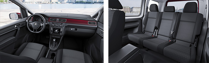 El Caddy Maxi, que presenta dos filas de asientos en el compartimento para pasajeros, tiene un volumen de carga es de 530 litros. El respaldo del banco de la tercera fila se puede abatir, y el de la segunda también se puede inclinar hacia delante, lo que amplía rápidamente la capacidad de carga. Si es necesario, incluso se pueden quitar ambas filas de asientos. Esto crea un espacio adicional de carga solo con unos pocos movimientos. Cuando se elimina la tercera fila de asientos, el volumen de carga se incrementa hasta los 1.350 litros, y cuando también se prescinde de la segunda fila, la capacidad crece hasta los 3.700. Con ello, el Caddy Maxi ofrece 848 litros más de espacio de carga que los 2.852 litros del Caddy pequeño con las filas de asientos extraídas. Esto significa que los usuarios pueden cargar mucho más en el Caddy Maxi, con un volumen de hasta 4,7 m3 (en combinación con el asiento opcional Flex Plus) mientras que el Caddy, tiene un volumen de 3,2 m3. La máxima carga útil del Caddy Maxi furgón, incluyendo el conductor, es de 1.005 kg.