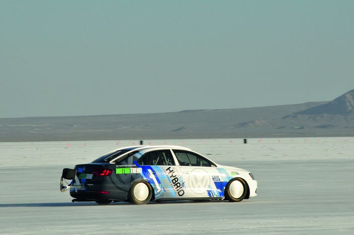 El objetivo de este ensayo era poner a prueba la potencia de la tecnología híbrida del Jetta y su potencial dinámico. Jonathan Browning, Presidente y Consejero Delegado de Volkswagen Group of America declaró: «Lograr este récord en Bonneville muestra que el nuevo Jetta Hybrid representa una oferta totalmente nueva en la categoría de híbridos compactos. Ofrece una sorprendente eficiencia de combustible y, al mismo tiempo, diversión al volante -tal como se espera de un Volkswagen-». Marc Trahan, Director de Calidad de Volkswagen of America, añade: «Fue un proyecto realmente fascinante para nuestros ingenieros en Wolfsburg, quienes, a partir de los complejos componentes del accionamiento híbrido, consiguieron una gran cantidad de potencia adicional para que pudiera alcanzarse el récord».